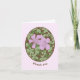 Este cartões de agradecimentos apresenta uma ilustração em forma oval das folhas e flores de sorriso de madeira. Um estilo de bloco de madeira dá a esta trabalho de arte uma qualidade única e artesanal. Disponível em flores violetas ou amarelas. Da obra de arte original de Carolyn A Pappas.