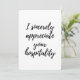 Cartão De Agradecimento Eu Aprecio Sua Hospitalidade