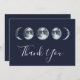 Lindas Fases Celestiais da Lua em marinho azul d'água, obrigado cartas. Recursos da placa, fundo de cor azul do marinho e linhas de modelo de texto branco para sua saudação, mensagem no verso e nome(s).