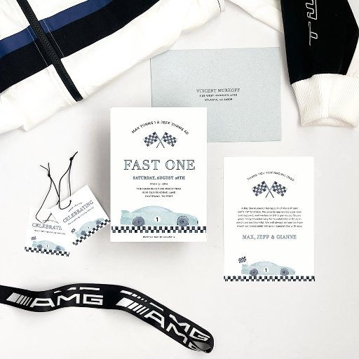 Diga obrigado a todos os seus convidados com estilo com nossos cartões de agradecimento Fast One. Adicione sua própria mensagem personalizada de agradecimento para todos os seus amigos e familiares.