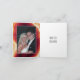 O foco deste cartão de nota de agradecimento de casamento de geodo moderno é a imagem de uma fatia de ágata vermelha e uma moldura branca com sua redação.