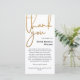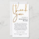 Cartões de agradecimentos para um serviço memorial com uma foto do seu amado lá atrás. No cobrir, em Obrigado, escrito em um roteiro escrevendo de mão e impresso com falso brilho dourado, adicione o obrigado que você escreve a preto sobre um fundo branco.