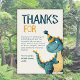 Faça seu pequeno aniversário de três anos Rex especial com este adorável cartões de agradecimentos de dinossauro! Apresentando um Tiranossauro Rex brincalhão em um charmoso design de aquarela, este cartão é perfeito para agradecer aos hóspedes após uma emocionante celebração de aniversário de dinossauros. O esquema de cores azul e amarelo adiciona um toque divertido e vibrante, fazer ideal para a festa de dino de um menino. Quer seja combinado com um convite de dino correspondente ou enviado por conta própria, este cartões de agradecimentos de aniversário de três rex é uma forma doce de mostrar apreciação. Peça agora e faça a festa do seu filho adorável de dino inesquecível!