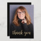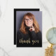 A frente deste convite para aniversário de 40 anos apresenta a foto do convidado de honra com as palavras "obrigado você" na elegante camada de script de caligrafia colorida em ouro. Uma tela escura ajuda a tornar o texto pop. Personalize o lado inverso com sua mensagem pessoal em fontes de sans serif de cor dourada e seu nome em script em um plano de fundo preto.