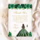 Este elegante e glamouroso cartões de agradecimentos de aniversário apresenta uma bela princesa com cabelo morena e pele de pele justa em um vestido de bola verde. O texto combina o script manuscrito e as fontes sans serif modernas para um aspecto elegante e sofisticado. Os arranjos florais, borboletas e confete de ouro criam a mistura perfeita de rústicos e quicos. Gráficos por www.etsy.com/uk/shop/SunflowerDayLove