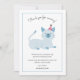 Cartão de agradecimento de festa de aniversário fofo para a festa temática de gato do seu filho. Ilustração de um gato azul com um sorriso no rosto usando um chapéu de festa. O texto acima diz "obrigado por vir!" e o texto abaixo entra em mais detalhes agradecendo ao amigo por participar do evento e pelo presente que trouxe. Você pode adicionar o nome do seu filho na parte inferior. Os textos são facilmente editáveis online.