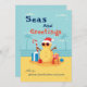 Famoso cartão de Natal de Ano Novo do Papai Noel é um cartão divertido para pensar na praia quente do arenito com o Sandy Claus nele e presentes. Personalize-o com seus nomes