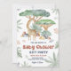 Este convite de festas de presente de chá de fraldas apresenta animais safari e plantas em fundo branco com tipografia personalizável.