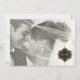 Molduras de filigrana, bordas e ornamentos deliciosos, texturizados em folha de ouro falso, decoram as peças desta elegante suíte de casamento. Este simples mas elegante cartão 'Obrigado' apresenta um quadro de trabalho de rolagem de ornamentado para segurar suas iniciais e data de casamento sobre sua foto favorita de casamento. Escolha qualquer cor de fundo, ou deixe o carvão quente, efeito texturizado que fornecemos ao contrário. Adicione seus nomes e obrigado pessoal que você envia usando o modelo fornecido. Procure ID871 para ver a coleção completa de casamento e outras opções de cores para este design.