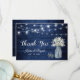 Cartão De Agradecimento Fio de bebê Luzes Marinho Casamento de Madeira Azu