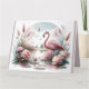 Cartão De Agradecimento Flamingo na cena floral de Pastel Pond