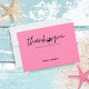 Avise aos seus convidados que os apreciam celebrando sua festa de aniversário com você enviando-lhes esses cartões de agradecimento com tipografia "obrigado você" em moderna escrita manual com uma silhueta de flamingo segurando um cocktail em um bonito fundo rosa. Arte da KL Stock.