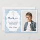 Cartão De Agradecimento Flocos de neve do inverno Foto azul Primeira Comun