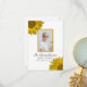 Mostre apreço aos seus convidados por lembrarem seu ente querido depois que eles passaram na Celebração do Life Memorial com a alegre Simpatia Funeral Amarelo Simpatia Funerária Flat Obrigado Nota Card. Este bonito e personalizado obrigado de homenagem à morte florida que você apresenta pétalas de girassol amarelo enfeitando os cantos com um fundo branco. Personalize-o com uma fotografia do falecido, das datas de nascimento e morte e da sua mensagem pessoal no verso.