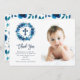 Cartão De Agradecimento Floral azul brilhante com a foto do baptismo da