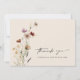 Este na moda e elegante cartões de agradecimentos de casamento apresenta lindas flores silvestres de cor d'água pintadas manualmente, organizadas como um adorável buquê perfeito para primavera, verão ou casamentos outono. Encontre itens correspondentes na Coleção de Casamentos de Boho Wildflower.