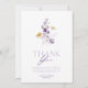 Um cartão de agradecimento lindamente projetado com flores delicadas em tons suaves de roxo, creme e verde. A tipografia elegante e os elementos botânicos criam um visual atemporal e sofisticado, perfeito para casamentos, chá de noiva, chá de bebê ou qualquer ocasião especial. Expresse sua gratidão com estilo com este encantador cartão de agradecimento floral.