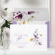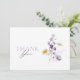 Um cartão de agradecimento lindamente projetado com flores delicadas em tons suaves de roxo, creme e verde. A tipografia elegante e os elementos botânicos criam um visual atemporal e sofisticado, perfeito para casamentos, chá de noiva, chá de bebê ou qualquer ocasião especial. Expresse sua gratidão com estilo com este encantador cartão de agradecimento floral.