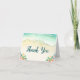 Este cartão de agradecimento elegante com tema de praia, apresenta flores em aquarela tropical e ondas do oceano na areia.