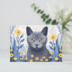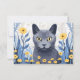 Cartão De Agradecimento Flores Amarelas do Gato Azul Russo