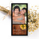 Envie pensamentos de apreciação e gratidão depois do seu casado, mas clássico, estilo fazenda, ou chá de panela com as charmosas e elegantes Flores Amarelas, Madeira Celestial e Pérolas País Obrigado Cartão com fotos. Este obrigado de tema rústico e personalizado fazenda ocidental você cartões de fotos apresenta uma pequena fotografia floral de flores amarelas, colar de pérolas brancas e madeira de celeiro de cascata marrom com uma cabeça de prego enferrujada.