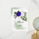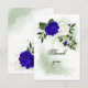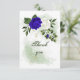 flores rotais, azuis e brancas, românticas, com algumas folhas verdes, cartões de agradecimentos botânico. São simulados os detalhes do brilho dourado