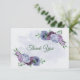 Cartão De Agradecimento Flores azuis roxas folhas verdes casamento