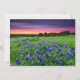 Esta incrível foto do Getty Images apresenta uma pastagem do Texas cheia de bluebonnets no pôr do sol.