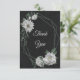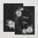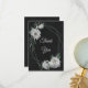 Cartões de agradecimentos de casamento único com flores brancas românticas e folhas verdes em fundo preto. PARA MAIS PRODUTOS CORRESPONDENTES, clique na coleção acima ou entre em contato comigo.
