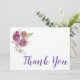 Mostrando a beleza das flores aquáticas, este Cartões de agradecimentos apresenta um lindo gráfico floral no canto superior esquerdo sobre um fundo branco. Na parte inferior à direita está "Obrigado" escrito lindamente em texto roxo e cursivo. O verso também tem uma fonte roxa sobre um fundo branco. Há uma modelo para personalizar seu texto. Personalize seu Cartões de agradecimentos hoje!