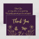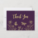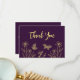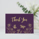 Cartão De Agradecimento Flores de ouro simples roxo casamento