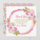 Cartão De Agradecimento Flores Elegantes Douradas e Rosa Brilhantes Doce D