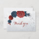 marinho de flores azuis e burgundy num cartões de agradecimentos botânico elegante de quadro geométrico