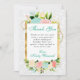 Cartão De Agradecimento Flores Rosa e Mint Douradas Aniversário