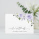Adicione um toque pessoal à sua celebração de casamento com estes itens de na moda e festa memoráveis! Design apresenta flores de aquarela roxas e verde sobre fundo branco.