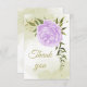 Belo cartões de agradecimentos floral com flores roxas bonito com algumas folhas verdes que acrescentam um aspecto romântico. São simulados os detalhes do brilho dourado. PARA MAIS PRODUTOS CORRESPONDENTES, clique na coleção acima ou entre em contato comigo