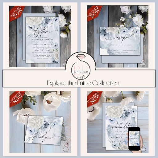 Cartão de Agradecimento | Riqueza Elegante Cópias Azuis - tons de azul com branco marfim - uma coleção de papoilas e flores da dália acentuadas com verde-pálido eucalipto verde-pálido - tudo colocado sobre fundo azul-aquarela-esplash - chá de caligrafia manuscrita - fácil de personalizar modelo - design original por ©WhimsicalArtwork™ para o Barefoot ™ . Isto é parte de uma suite de artigos de papelaria de casamento, assim como Chás de fraldas, Aniversário e Convites de Natal. Para perguntas ou assistência, entre em contato com o designer indy.designer@yahoo.com.