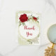 Belo cartões de agradecimentos com flores vermelhas e brancas e folhas verdes Os detalhes da brilha do ouro são simulados. PARA MAIS PRODUTOS CORRESPONDENTES, clique na coleção acima ou entre em contato comigo