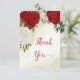 Belo cartões de agradecimentos com flores vermelhas e brancas e folhas verdes Os detalhes da brilha do ouro são simulados. PARA MAIS PRODUTOS CORRESPONDENTES, clique na coleção acima ou entre em contato comigo