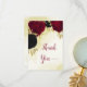 Cartão De Agradecimento flores vermelhas pretas ouro folhas casamento