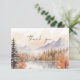 Um cartão de agradecimento florestal que apresenta uma cena florestal em aquarela em tons suaves de outono e uma fonte moderna. Este cartão plano tem a palavra "obrigado" na frente e uma mensagem de agradecimento editável no verso. Este cartão é a maneira perfeita de agradecer aos convidados pelos presentes do chá de bebê, casamento ou festa. Combine com qualquer coisa da coleção RILEY para um visual coeso.