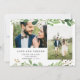 Este elegante cartões de agradecimentos de casamento preto e branco apresenta um lugar para duas das suas fotos pessoais favoritas e muita folhagem verde de aquarela.