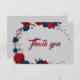 Cartão De Agradecimento folhas de cinzas de flores azuis vermelhas e marin