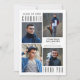 Design clássico, preto e branco moderno com texto elegante e quatro fotos do formando na frente e uma atrás. O verso tem um campo de texto opcional para incluir uma mensagem de obrigado pré-impressa - você ou excluir o texto de amostra para deixar o vazio de área para notas de leitura de escrita manual. DICA DA FOTO: Para obter resultados mais rápidos/melhores, escolha uma foto com o assunto no meio e/ou pré-plante para uma forma semelhante, conforme mostrado ANTES de carregar, e ela preencherá o espaço de fotos perfeitamente. Entre em contato com o designer por meio do Zazzle Chat ou makeitaboutyoustore@gmail.com se você quiser que este design seja modificado, em outro produto ou em itens de coordenação.