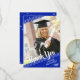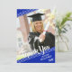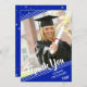 Linhas brancas simples e limpas contra um fundo azul real e estrelas amassadas com um título de script de pincel OBRIGADO, e sotaque seu nome de formando e uma das fotos deles no ano da graduação. A parte traseira apresenta um padrão de estrelas e um local para digitar em uma mensagem genérica de obrigado (você pode deletar o texto de exemplo para deixar o vazio para mensagens escritas manualmente pessoais) em um fundo azul real. DICA DA FOTO: Para obter resultados mais rápidos/melhores, na frente, escolha uma foto com o assunto no meio de um retângulo horizontal para acomodar a colocação na diagonal. e/ou recorte-a em uma forma de retângulo largo ANTES de carregar e preencherá perfeitamente o espaço de fotos. Entre em contato com o designer por meio do Zazzle Chat ou makeitaboutyoustore@gmail.com se você quiser que este design seja modificado, em outro produto ou item de coordenação.