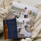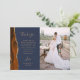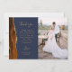 Mande a sua família e amigos um obrigado especial de casamento com esses cartões com fotos personalizados. À esquerda, as palavras "obrigado você" aparecem na elegante tipografia de escrita manual dourada sobre um fundo azul marinho sobre uma breve e editável mensagem de obrigados aos seus convidados de casamento em letra de modelo, com seus nomes abaixo. Uma borda agitada de cor laranja queimada, aparada com brilho de ouro falso, decora a borda esquerda. O verso fornece espaço para uma segunda foto horizontal.