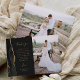 Mande a sua família e amigos um obrigado especial de casamento com esses cartões com fotos personalizados. À esquerda, as palavras "obrigado você" aparecem na elegante tipografia de escrita manual dourada sobre um fundo preto de slate sobre uma breve e editável mensagem de obrigados para seus convidados de casamento na fonte da placa, com seus nomes abaixo. Uma aquarela preta agata borda aparada com brilho de ouro falso decora a borda esquerda. O verso fornece espaço para uma segunda foto horizontal.
