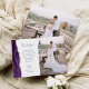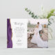 Mande a sua família e amigos um obrigado especial de casamento com esses cartões com fotos personalizados. À esquerda, as palavras "obrigado você" aparecem na elegante cinza de carvão escrevendo tipografia em um fundo branco sobre uma breve e editável mensagem de obrigados para seus convidados de casamento em letra de modelo, com seus nomes abaixo. Uma aquarela púrpura agita a borda aparada com brilho de ouro falso decora a borda esquerda. O verso fornece espaço para uma segunda foto horizontal.