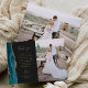 Mande a sua família e amigos um obrigado especial de casamento com esses cartões com fotos personalizados. À esquerda, as palavras "obrigado você" aparecem na elegante tipografia de escrita manual dourada sobre um fundo preto de slate sobre uma breve e editável mensagem de obrigados para seus convidados de casamento na fonte da placa, com seus nomes abaixo. Uma aquarela azul-lacrimejante agata borda aparada com brilho de ouro falso decora a borda esquerda. O verso fornece espaço para uma segunda foto horizontal.