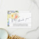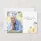 Cartões de agradecimentos funerário com elegante guião manuscrito e arranjos de aquarelas das flores em amarelo de pêssego e ouro. O modelo está preparado para você adicionar uma foto 'em memória amorosa' às costas com o nome de seu ente querido, assim como sua mensagem personalizada de obrigados na frente.